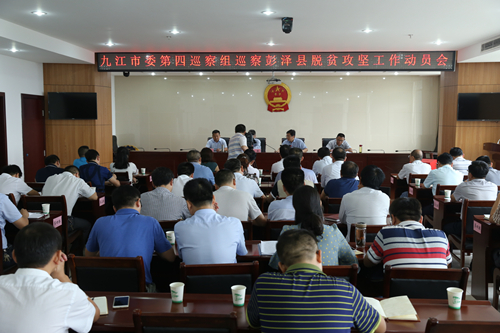 根据市委统一部署,市委第四巡察组进驻彭泽县开展脱贫攻坚专项巡察工作。2017年9月11日,市委第四巡察组巡察彭泽县脱贫攻坚工作动员会召开。市委第四巡察组组长鄢藜出席会议并作动员讲话。彭泽县委书记宁小球主持会议并作表态发言。市委第四巡察组副组长朱承波、夏震和全体成员及县委领导万述幼、万建明、马亮出席会议,涉及脱贫工作的县直单位和有脱贫任务的乡镇等单位相关同志参加会议。